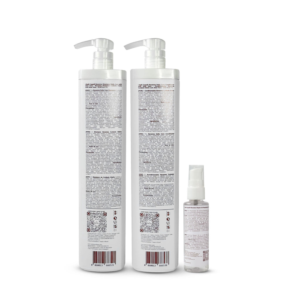 Kit I Belli Capelli Ravenna Daily Care with Aloe Vera – Shampoo + Conditioner + Repair Oil